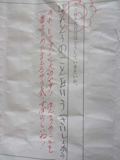 今日の道徳の時間に、「自分を守るためだけのうそはいけない」という学習をしました。「うそつき地獄がやってくる」という映像を見て、叱られたくないという気持ちからついた軽いうそのせいで、最後までうそをつき続けなければいけなくなってしまう危険を知りました。