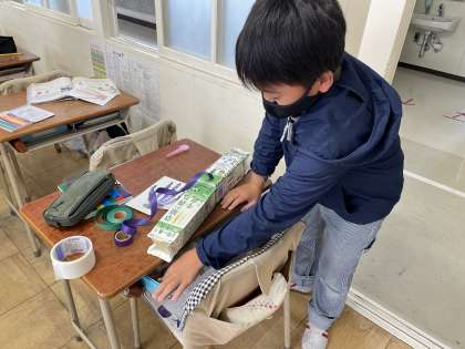身体のつくりの仕組みを学ぶための実験器具を、牛乳パックを使って作っています。途中で時間がきてしまったので、来週続きをやります。牛乳パックの準備をしていただき、ありがとうございました。