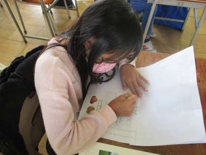 2組の国語では、大豆から変身する食品の作り方について、学習しました。動画などを見ながら確認していきました。一生懸命がんばってワークシートを書いていました。