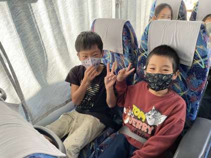 バスではシートベルトをしっかりつけて、出発です!