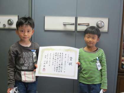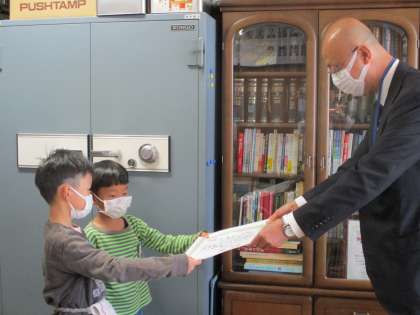 校長室で校長先生から表彰していただき、とってもうれしそうでした。