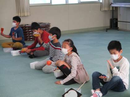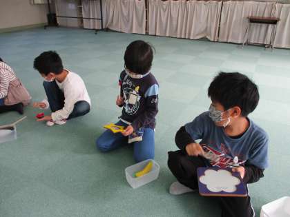音楽療法がありました。歌に合わせて体を動かしたり、自分の好きな楽器を鳴らしたりしました。楽しい時間になりました。