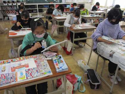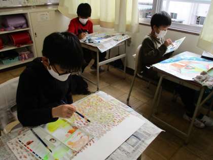 グラデーションにしたり、奥行きを意識したりするなど工夫して一つ一つ丁寧に塗っていました。