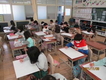 今年度の読書感想画課題図書の中から、『アパートのひとたち』を選んで、お話の絵を描き始めました。一つのアパートの中には、いろいろな人たちが住んでいて、その人たちの部屋の中の様子を想像しながら、楽しく絵を描くことができました。