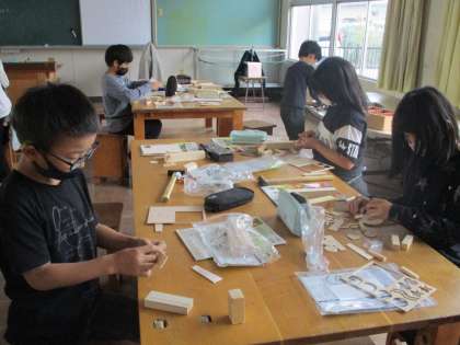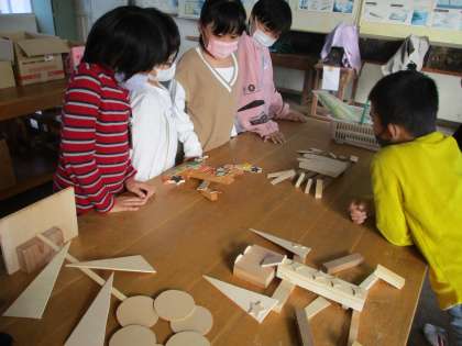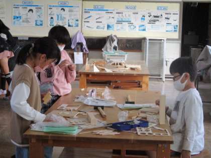 作品展の作品作りが始まりました。木材にくぎを打って、作品を作る「くぎうちトントン」です。どこにくぎを打ったらいいか考えながら、作りたいものを目指してくぎを打っていました。今から完成が楽しみですね。