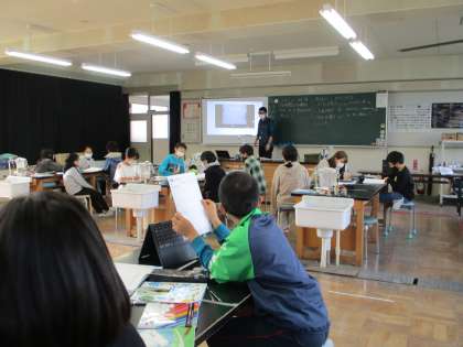 理科では、振り子の学習をしています。ゆれ方が違うのは、何が関係しているのかを考えました。自分の考えをワークシートに書き込み、発表しました。