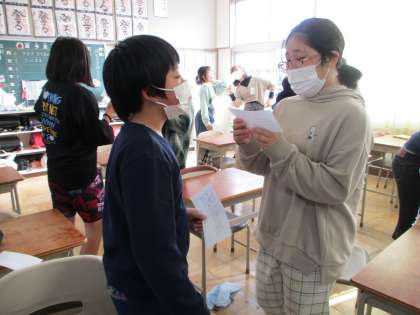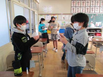 人権週間に合わせてオアシスカードを書きました。隣の席の友達に書いたものを互いに読みあって渡しました。