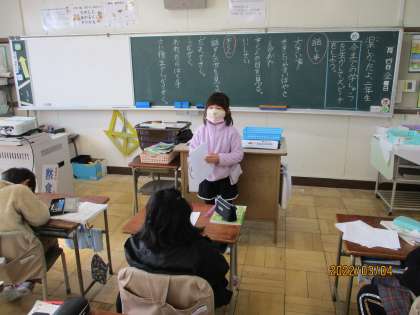 3月7日 2年生 国語「楽しかったよ、2年生」