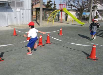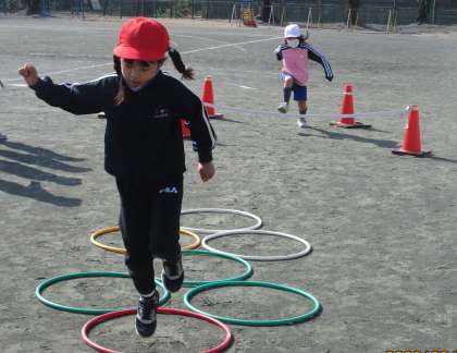 体育で「とびあそび」をしました。ゴム跳びをしたり、けんぱをしたりして、楽しく体を動かすことができました。