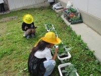 3年生最後の体育では、キックベースボールをしています。ボールを蹴ったり、守ったりして、思いっきり体を動かしました。