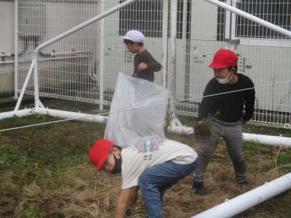 今日は朝全校で草取りをしました。みんながとても頑張ってくれたので90リットルの袋4杯分の草を集めることができました。生活の時間には畑の草取りもしました。おかげでとてもきれいになりました。