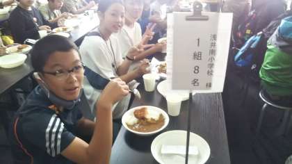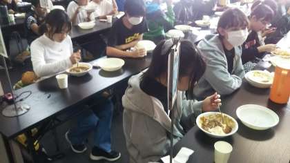 昼食のカツカレーをおいしくいただきました。