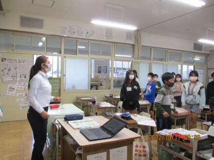 「まっすぐ進む」や「右に曲がる」など道のりを進むときの英語を学びました。