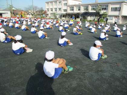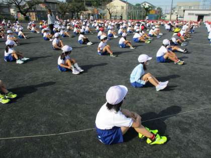 朝に運動会の全校練習を行いました。気を付けや行進の練習をしました。お兄さんやお姉さんのお手本を見て、一生懸命頑張っています。