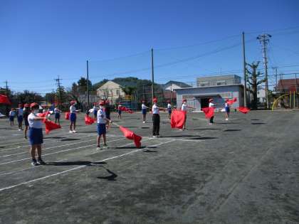 修学旅行があったので久しぶりのダンス、フラッグの練習でした。日にちが空いたので忘れていないか心配していましたが、忘れることなくしっかり動くことができました。