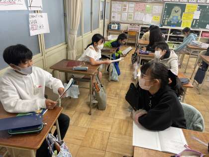 ペアで自分考えを伝え合い、理解を深めることができました。