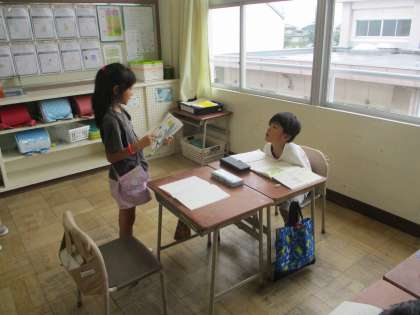 本日は、「雨のうた」の音読をしました。自分が気に入った部分を選び、声や読み方を工夫して、友達に発表することができました。