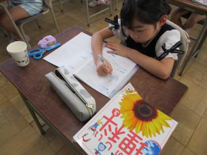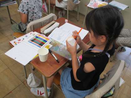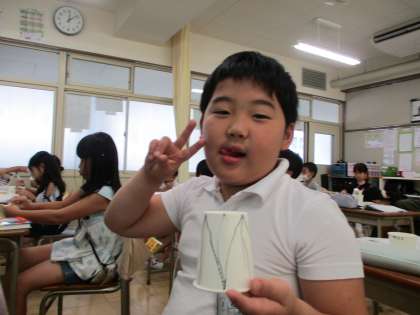 今日の理科では、「糸電話」を使って音の学習をしました。昨日の理科の時間に糸電話に絵を描いて、世界に一つだけの自分だけの糸電話を作りました。今日は、糸電話はピンと糸をのばすと、上手く相手とお話しできることを学びました。