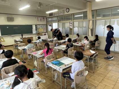 図工では、「まどからこんにちは」の作品作りに取り組んでいます。カッターナイフを今日は初めて使い、刃の出し方に注意するなど安全にも気を付けて、作品作りに取り組むことができました。