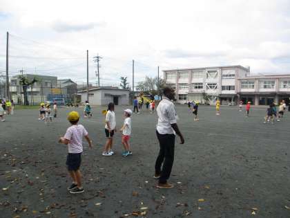 久しぶりに昼放課、子どもたちは外で遊ぶことができました。子どもたちは歓喜の声を上げて楽しんでいました。今日から本校におみえになったALTの「ジョン・ムサ」先生が、子どもたちと一緒になってアクティブに活動しました。どの学年に入っても大人気です。