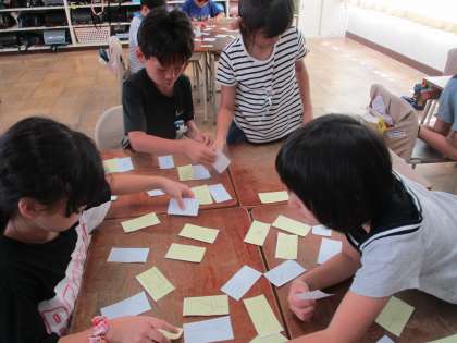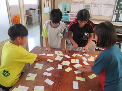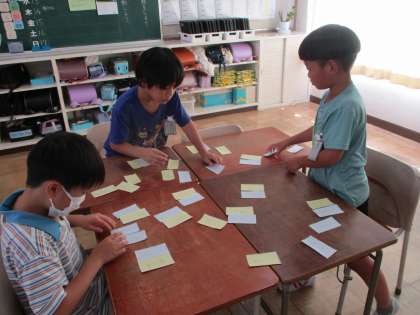 国語の「へんとつくり」の学習で、へんとつくりに分けた漢字を見つけるゲームをしました。きちんとルールを守って、仲良くゲームをすることができました。