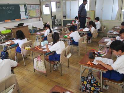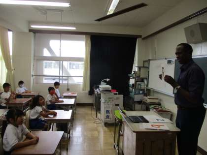 今日1組では、2学期になってから初めての英語活動を行われました。新しいALTの先生とアルファベットの読み方を確認し、絵の中から見つけることができました。
