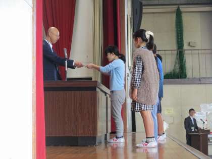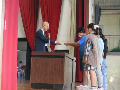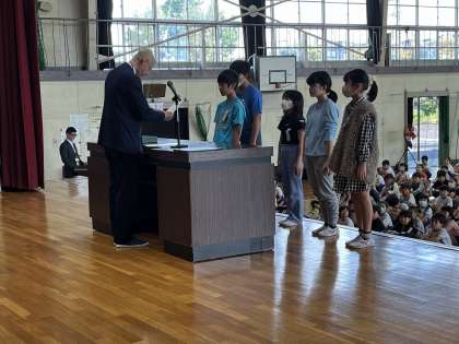 きりっとした立派な態度で校長先生から任命状を受け取りました。