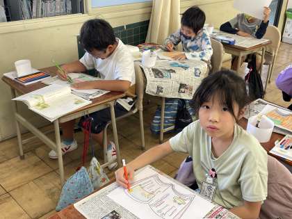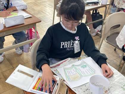 今日の国語の授業時間は音読劇に向けて、お面を作りました。「地の文」「がまくん」「かえるくん」の3つに分かれて練習をしていきます。練習が楽しくなりますね。