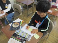 図工の「たのしく うつして」で紙版画を作りました。いろいろな柄の紙やひもなどを使って作品を作りました。黒いインクをローラーで塗った時には、驚きの声が上がっていました。素敵な作品ができました。