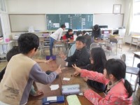 図工の時間は写生大会の風景画を描いています。遠近法を使い下絵を仕上げ、色塗りに入りました。みんな一生懸命です。