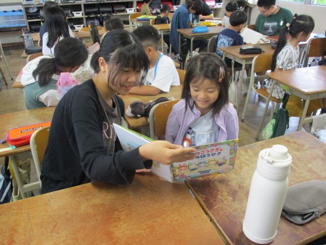 6年生のお兄さん、お姉さんが心を込めて選んでくれた絵本を読んでもらい、みんなとても嬉しそうな様子でした。1年生のために、優しく絵本を読んでくれた6年生には、最後、感謝の気持ちを込めてきちんとお礼を伝えることができました。