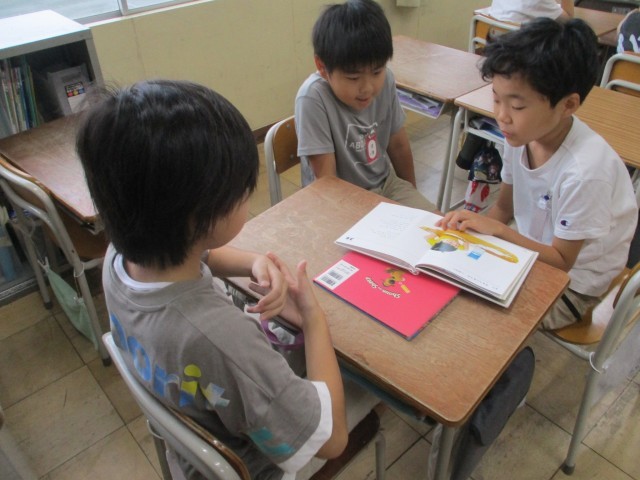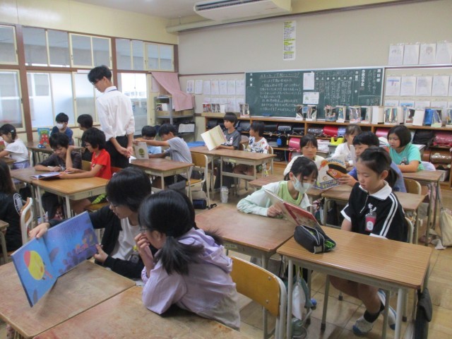 朝の時間に、5年生と3年生のペア読書をしました。5年生が事前に図書室で選んだ本をペア学級の3年生へ読み聞かせていました。3年生は、楽しそうに聞いていました。