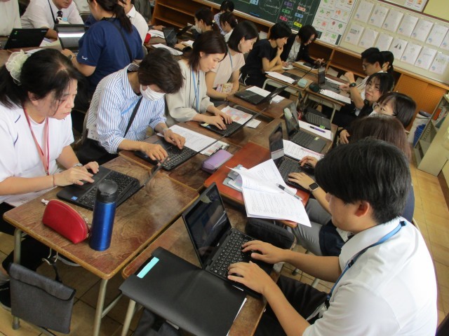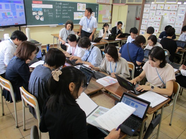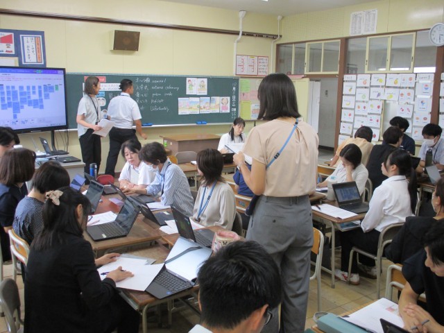 3年生で行った外国語活動の授業について、参観した先生方で集まり、協議会を行いました。