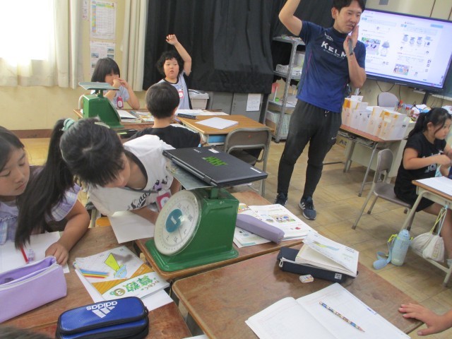 今日は台ばかりとばねばかりを使って身の回りのものをはかってみました。