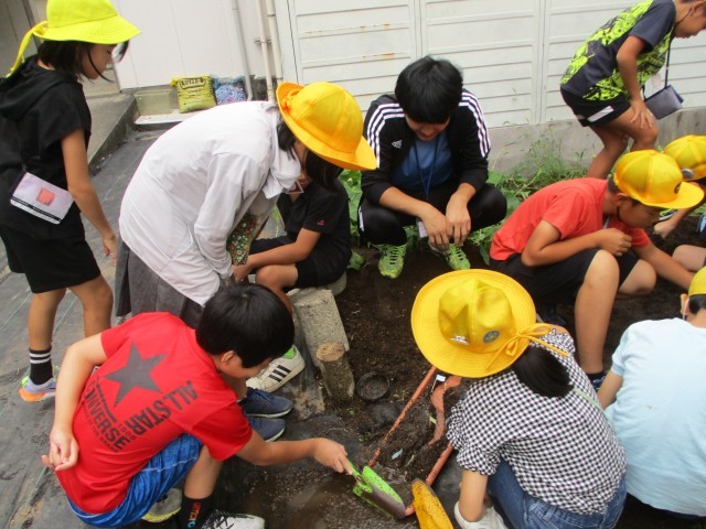 10/7(火)5年 流れる水のはたらき 公開日 2025/10/07 更新日 2025/10/07 5年 理科の時間に流れる水のはたらきについて学習をしています。今日は実験をしました。水を流して土が削られる様子を観察しました。 5年生 ひまわり組