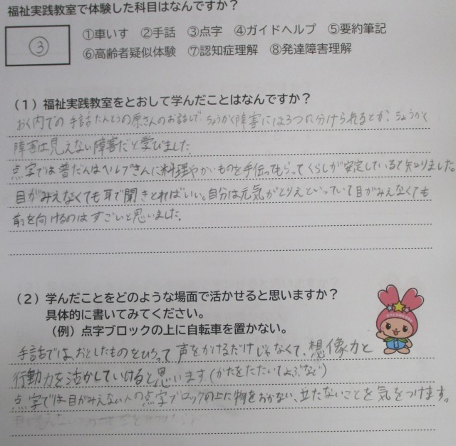 10/14(火) 5年 福祉実践教室の感想