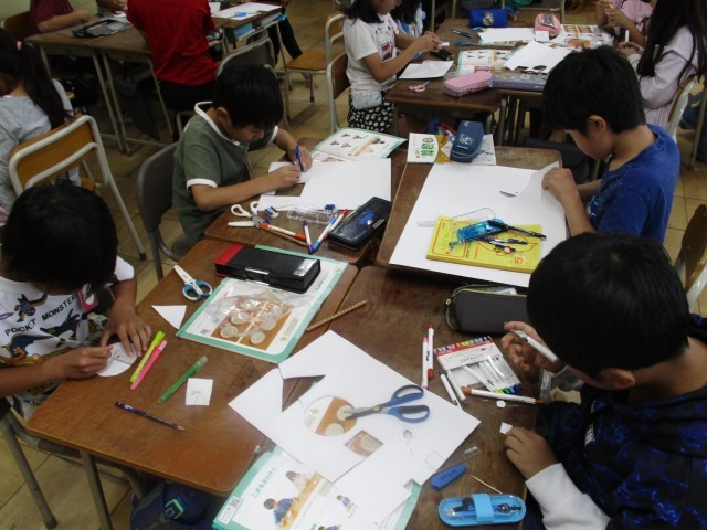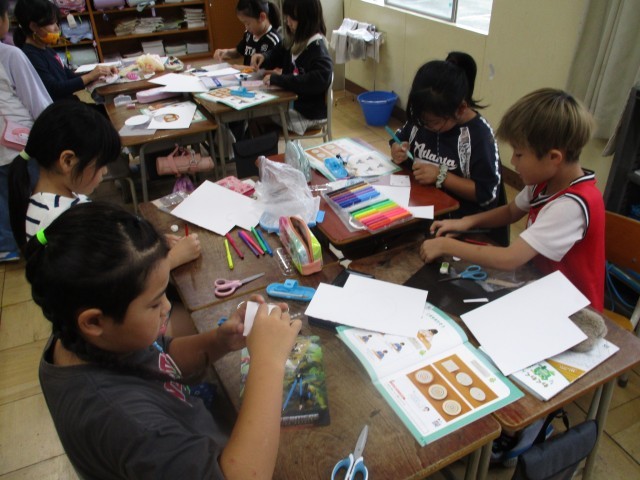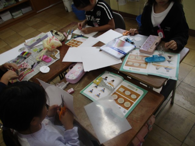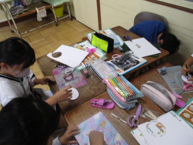 カラーペンで点を打ち、その点がどのように見えるのか試しています。