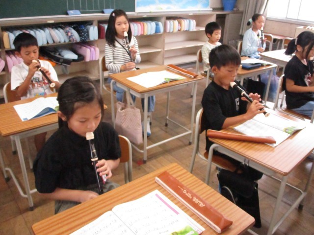 曲に合わせて楽しそうにリコーダーを吹いていました。