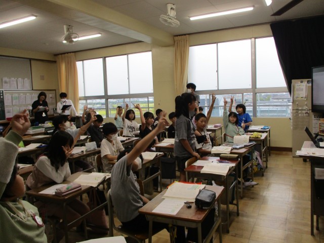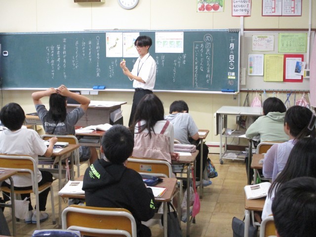 今日は教育実習の先生が授業を行いました。子どもたちもがんばって手を挙げて発表したりワークシートに自分の考えを積極的に記入している姿が見られました。