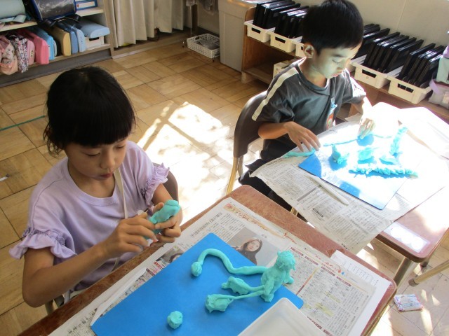 犬、猫、カメ、モルモット、ムカデ・・・自分のお気に入りのものを楽しくつくっていました。