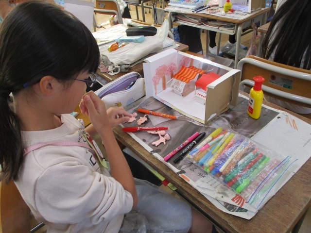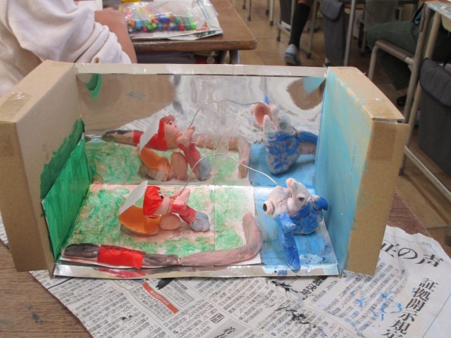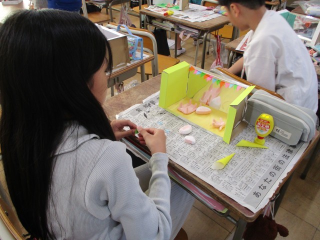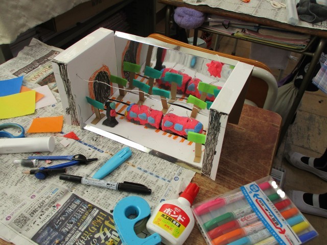 それぞれテーマを決めて紙粘土や色紙でつくっています。