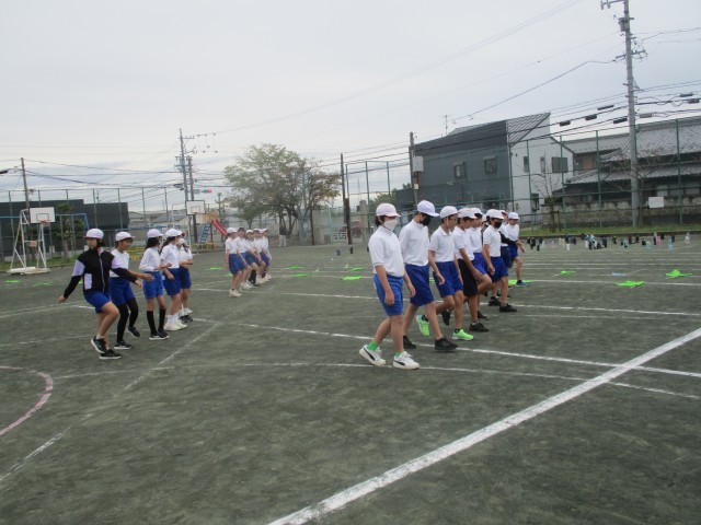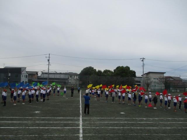 表現の練習をがんばっています。旗を上げたり下げたりするときにそろうよう、タイミングを合わせて振る練習をしています。また、隊形移動が多く、そろえて動けるよう息を合わせて動きます。毎日練習がありますが、みんな一生懸命練習しています。本番まであと1週間ちょっとになります。みんなそろって動けるよう、がんばっていきましょう。