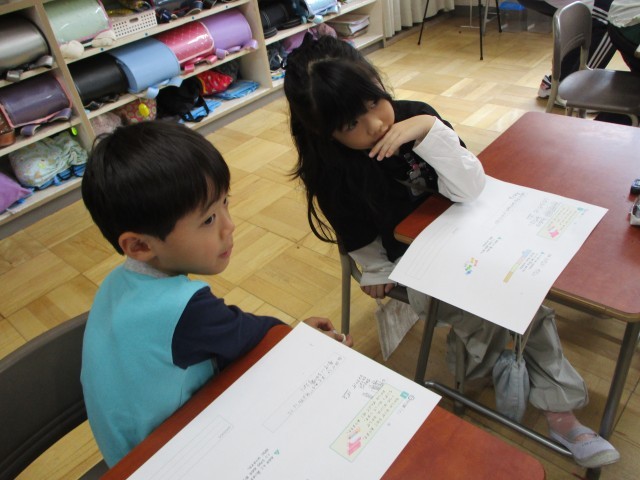 ではとちらが正しいかな? ペアで話し合って考えました。