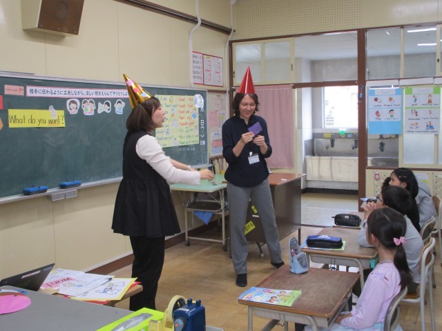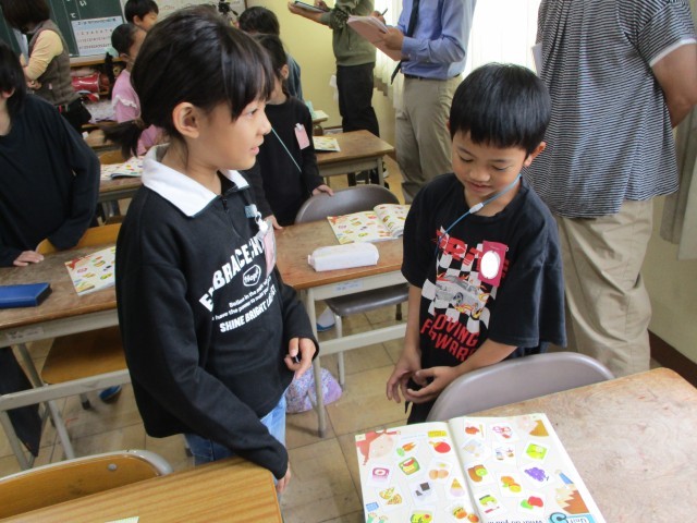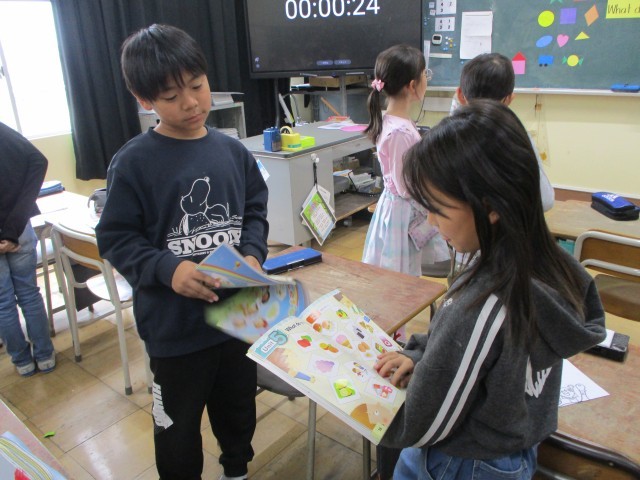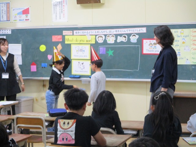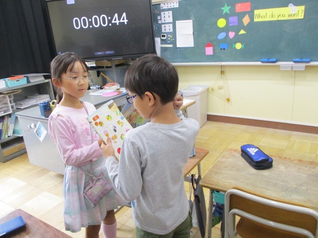 英語活動の時間に「What do   you  want?」の会話の練習をしました。