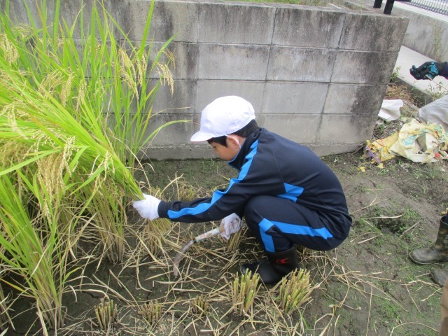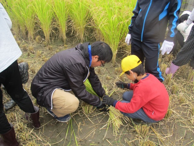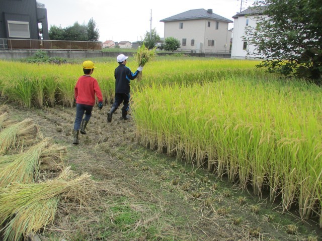 今日の様子です。地域の方の協力をいただいて、稲刈りを体験をすることができました。