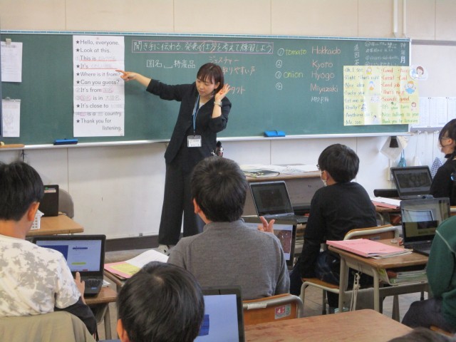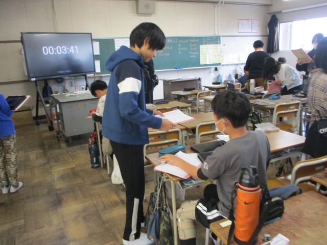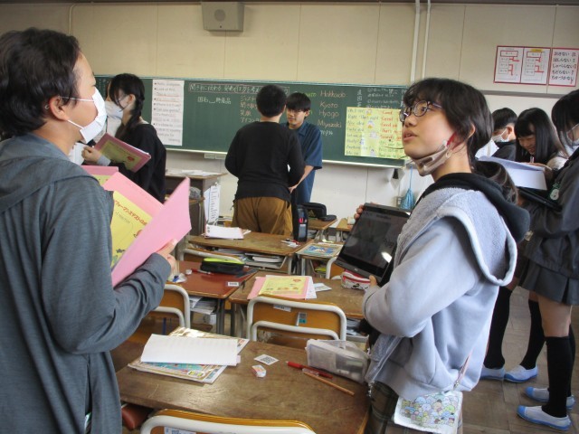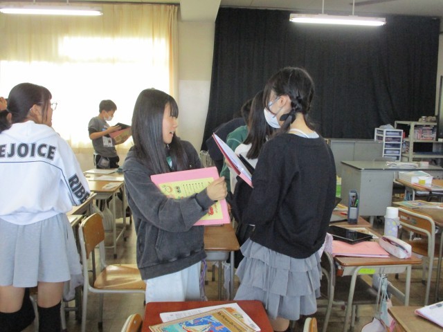 定型文を参考にしながら友達に英語でスピーチをしました。