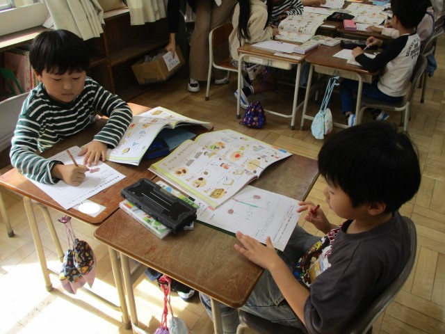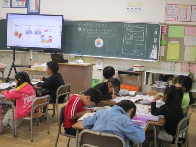 今日は教科書を見て何をつくるか、どんな材料がいるのかグループで話し合いました。