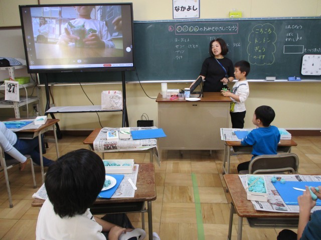 10/27(月)ひまわり組 粘土でつくったよ! 公開日 2025/10/27 更新日 2025/10/27 ひまわり組 たべものやさんになって粘土でパフェやケーキなどをつくりました。前で何をつくったのか、セールスポイントなどを発表しました。秋らしく栗やサツマイモ、ハロウィンに関係するものがありました。上手にできてうれしそうに発表してくれました。 ひまわり組