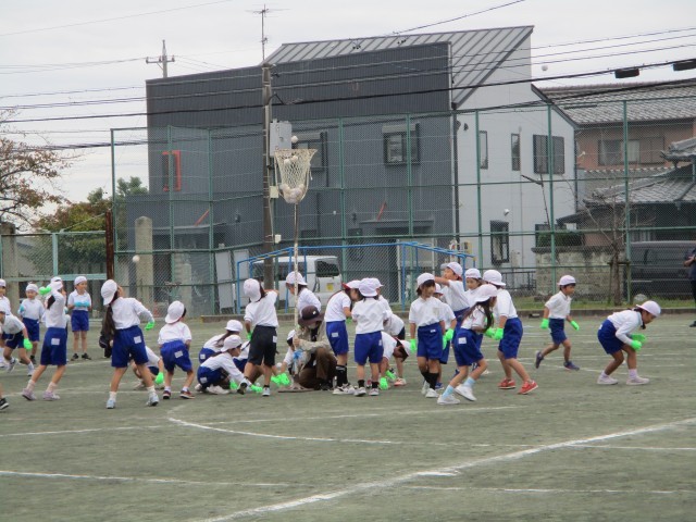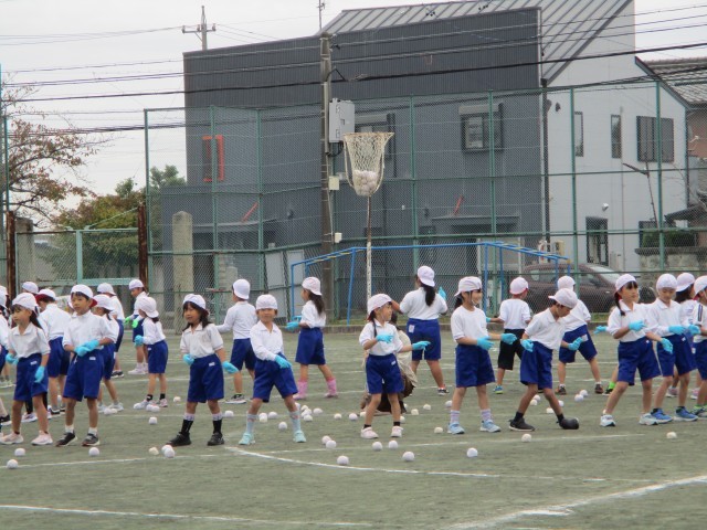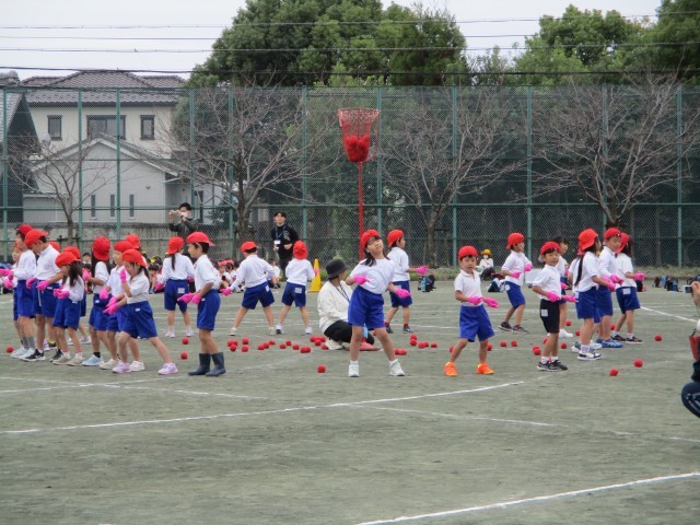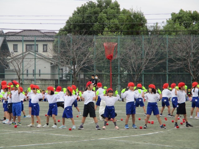 1年生は「ダンシング玉入れ おどってポン!」でした。
