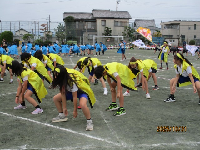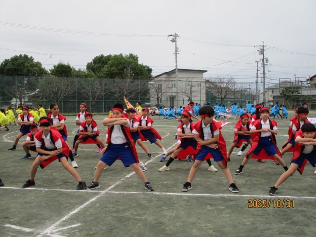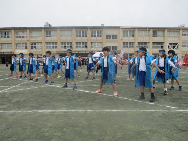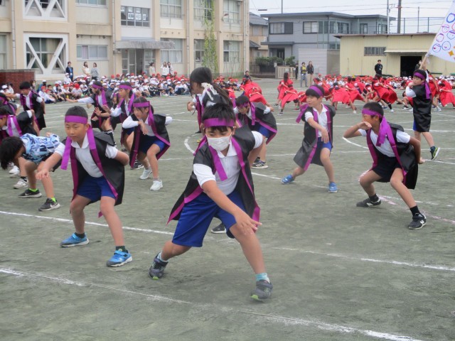 全校に見守られる中、100パーセントの力を出し切って、かっこよく踊りました。